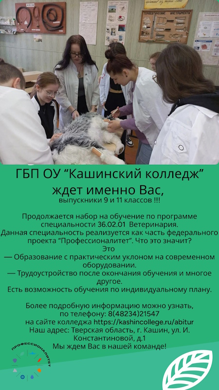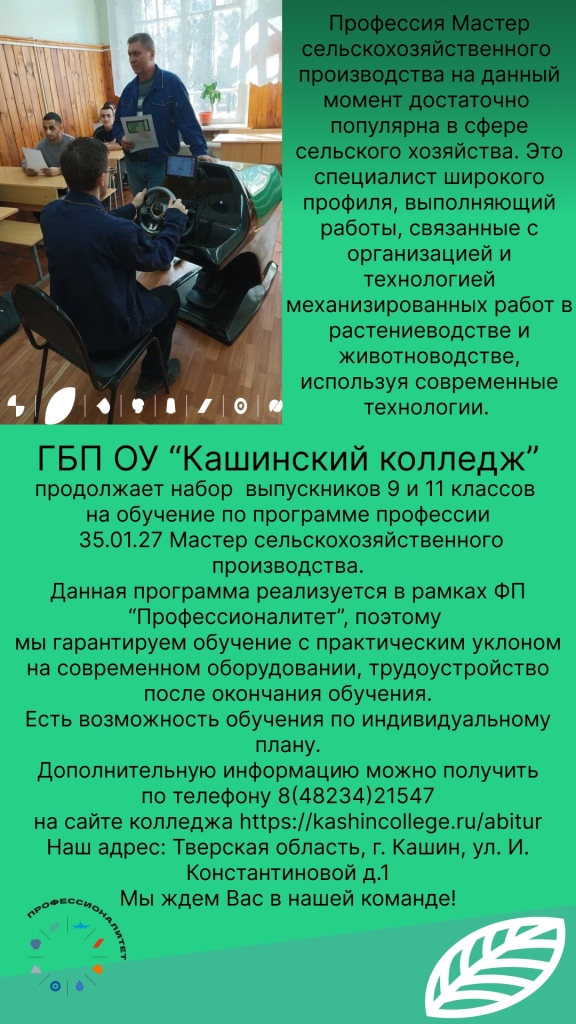 ГБП ОУ "Кашинский колледж" продолжает прием на обучение выпускников 9,11 классов.
