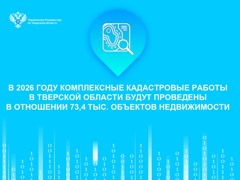 В 2026 году комплексные кадастровые работы (ККР) федерального назначения в Тверской области будут проводиться в отношении 73,4 тыс. объектов недвижимости, расположенных на территории 23 муниципальных образований. В перечень вошли Бежецкий, Бельский, Бологовский, Вышневолоцкий, Зубцовский, Калязинский, Кашинский, Кимрский, Конаковский, Краснохолмский, Кувшиновский, Лесной, Лихославльский, Нелидовский, Оленинский, Осташковский, Ржевский, Сандовский, Спировский, Старицкий, Торжокский, Торопецкий муниципальные округа, а также городской округ город Тверь. С 2025 года единым исполнителем ККР в Тверской области за счет средств федерального бюджета выступает региональный филиал ППК «Роскадастр».