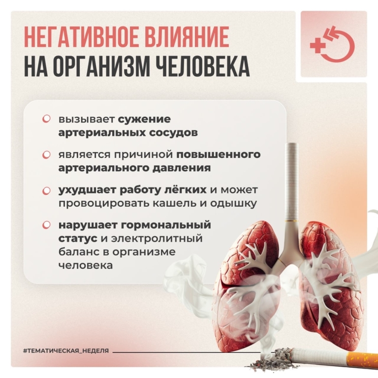 Никотин влияет на работу сердца, сосудов, лёгких и нервной системы – и это касается не только сигарет. Вейпы, электронные устройства и другие виды никотинсодержащей продукции также вызывают зависимость и несут риски для здоровья.