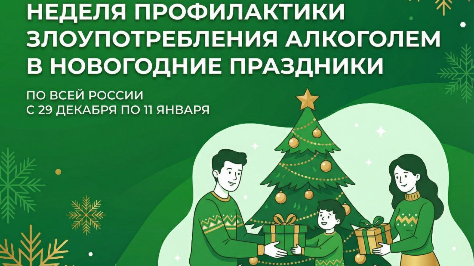 29 декабря 2025 года - 11 января 2026 года - Неделя профилактики злоупотребления алкоголем в новогодние праздники.