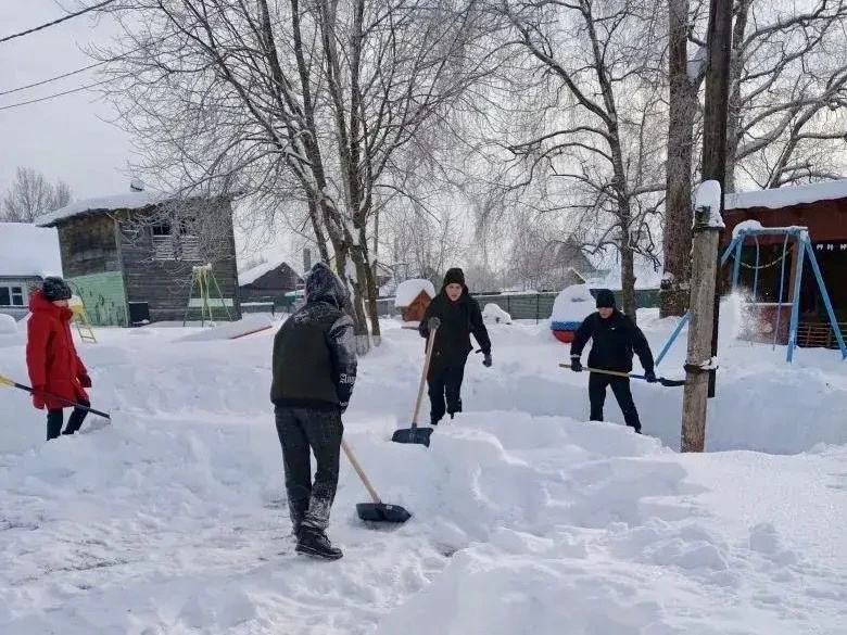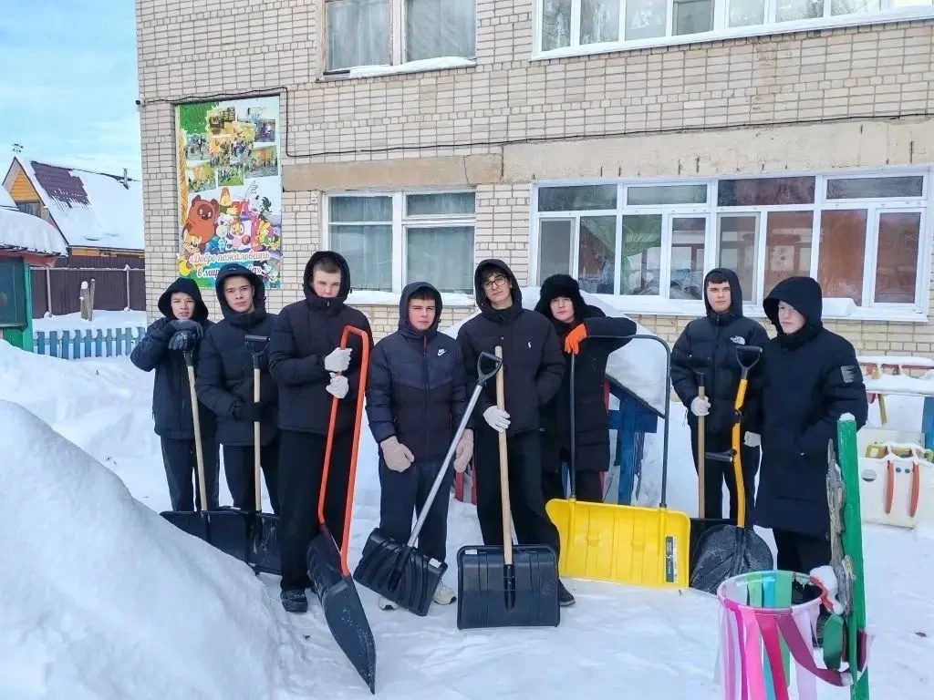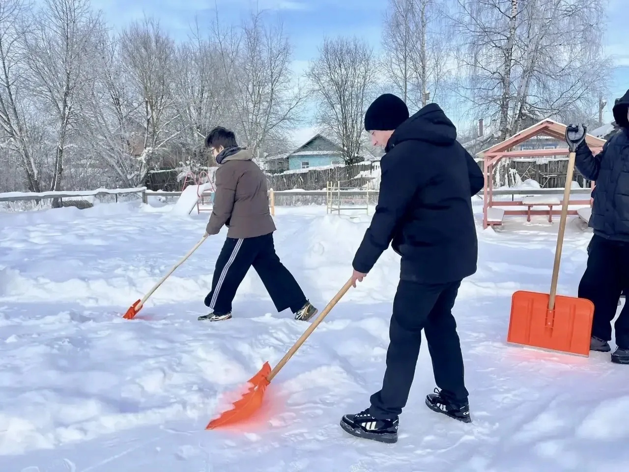 Эта зима выдалась особенно снежной — детские игровые и прогулочные зоны были сильно засыпаны. Ребята дружно расчищали дорожки, игровые элементы и территории для прогулок, чтобы малыши могли безопасно и с удовольствием проводить время на свежем воздухе.