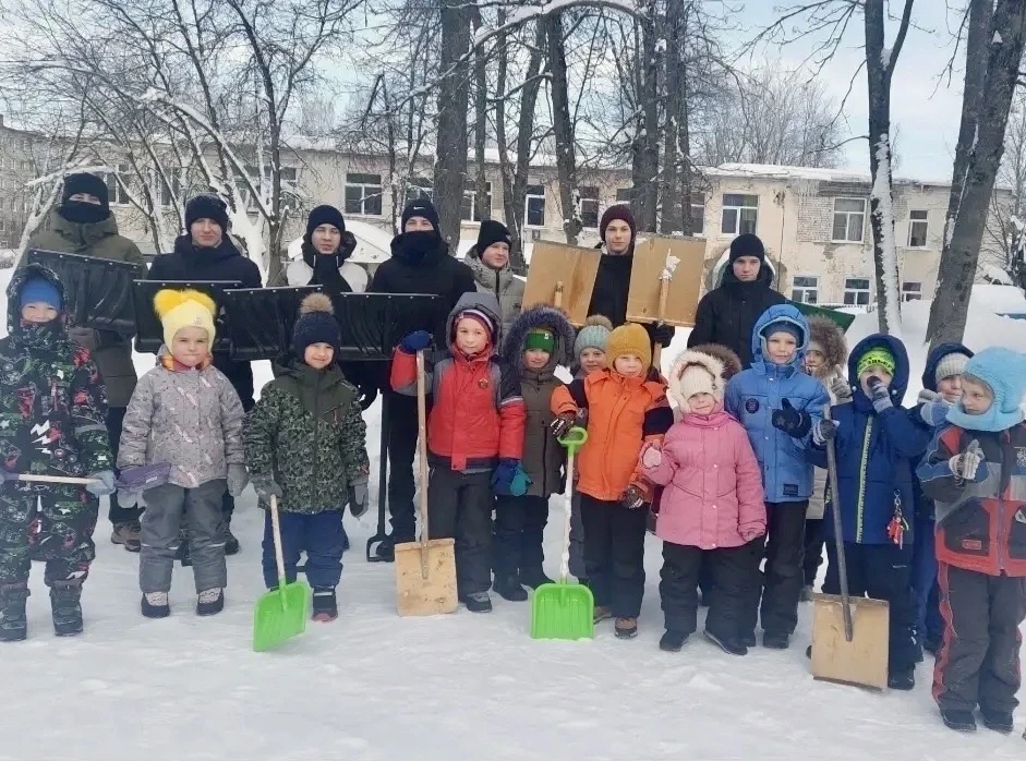 На прошлой неделе в Кашинском округе школьники приняли участие в акции «Снежный десант» и помогли расчистить от снега территории детских садов.
