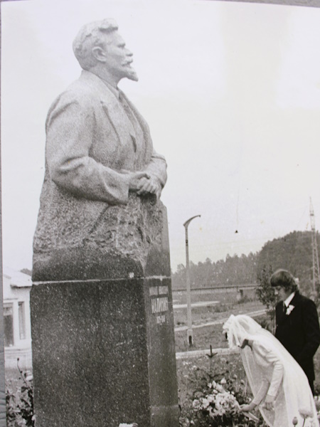 Первое в серии фото 80-х гг, д. Верхняя Троица, бюст М.И. Калинина, дом культуры.