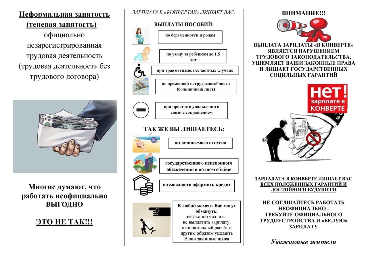 Теневая занятость – это нелегальная деятельность, т.е. выполнение работ (оказание услуг) без оформления трудового или гражданско-правового договора, либо осуществление предпринимательской деятельности без официальной регистрации, предусмотренной законодательством.