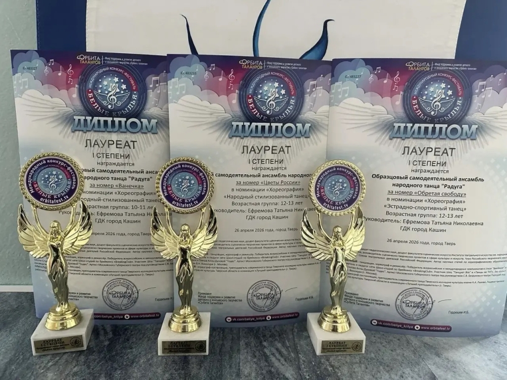 26 апреля в Твери состоялся Международный конкурс-фестиваль «Белые крылья», организованный фондом поддержки и развития детского и юношеского творчества «Орбита талантов». В престижном творческом состязании приняли участие коллективы из разных регионов, а город Кашин достойно представили воспитанники местных творческих студий городского дома культуры.