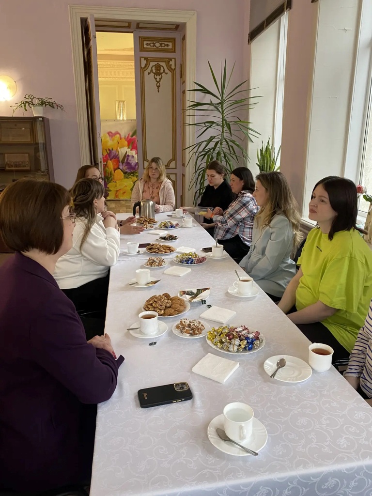 Будущих мам ждала выставка картин «Мать и дитя», подготовленную воспитанниками Кашинской школы искусств, душевный концерт и чаепитие, где в дружеской обстановке присутствующие обсудили меры поддержки семьям с детьми.