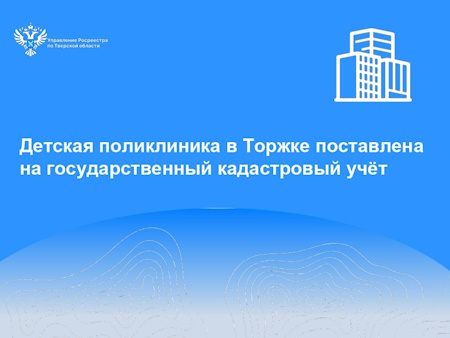 Управлением Росреестра по Тверской области поставлено на государственный кадастровый учёт здание детской поликлиники, расположенной по адресу: Тверская область, город Торжок, улица Больничная, дом 30.