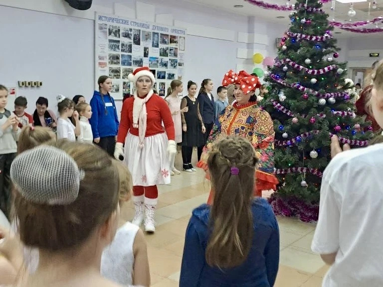 После представления праздничная программа продолжилась в фойе, где для детей были организованы разнообразные конкурсы и викторины, все желающие смогли принять участие в развлекательной программе вместе с дедом Морозом и Снегурочкой.