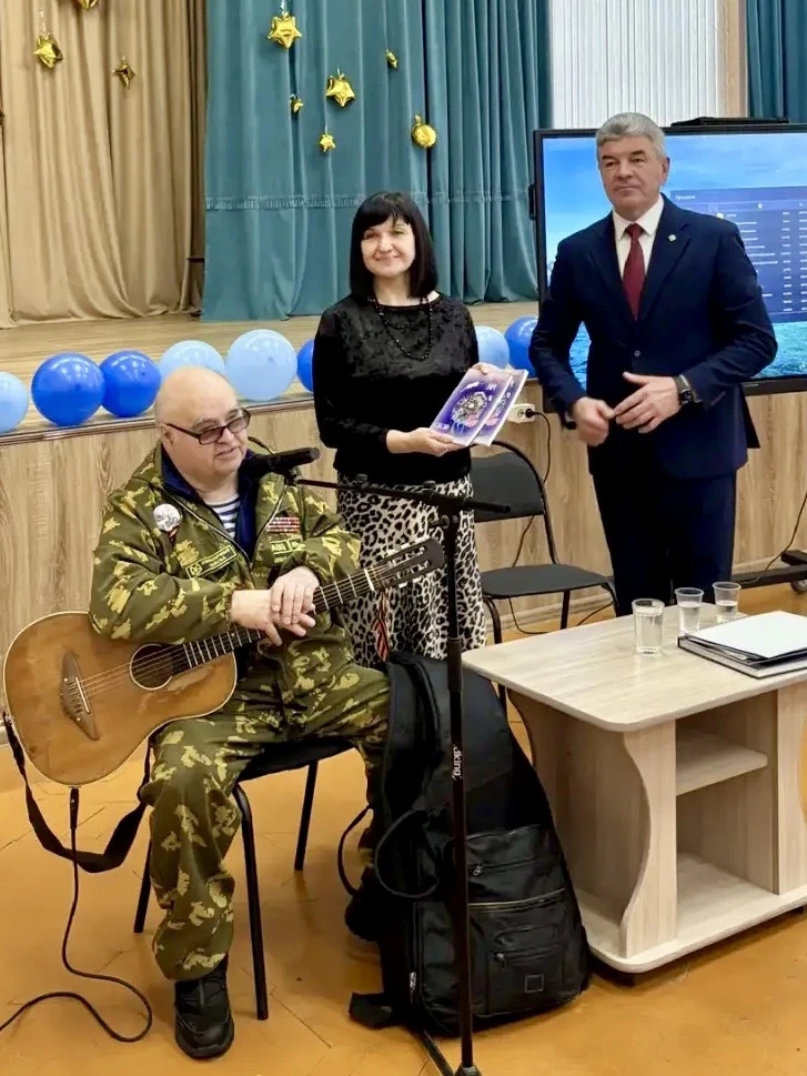 Особый отклик у ребят вызвали авторские песни Валерия Монастырева — «Наша Катюша», «Казачка Ксения», «Десантная тельняшка» и другие. Куплет легендарной «Катюши» зал исполнил вместе с автором.