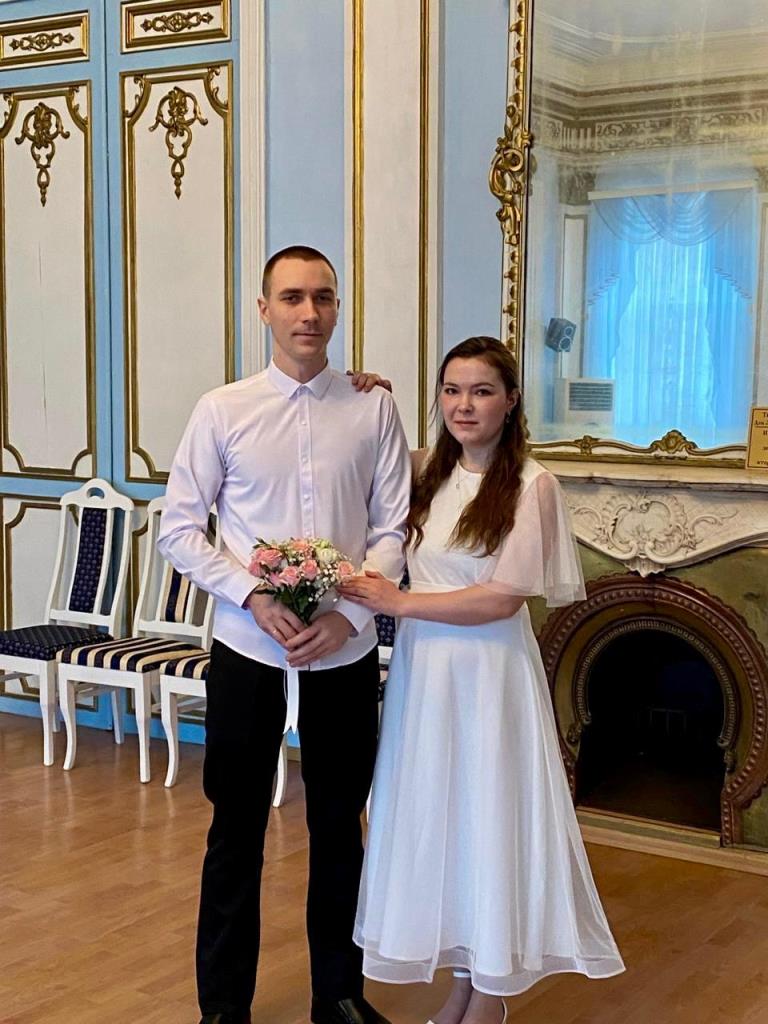 Среди сегодняшних пар была и та, чья регистрация в этом году стала юбилейной - 70-ой по счету. Это пара наших земляков Кашковых Алексея и Яны. Для обоих молодых людей это первый брак.