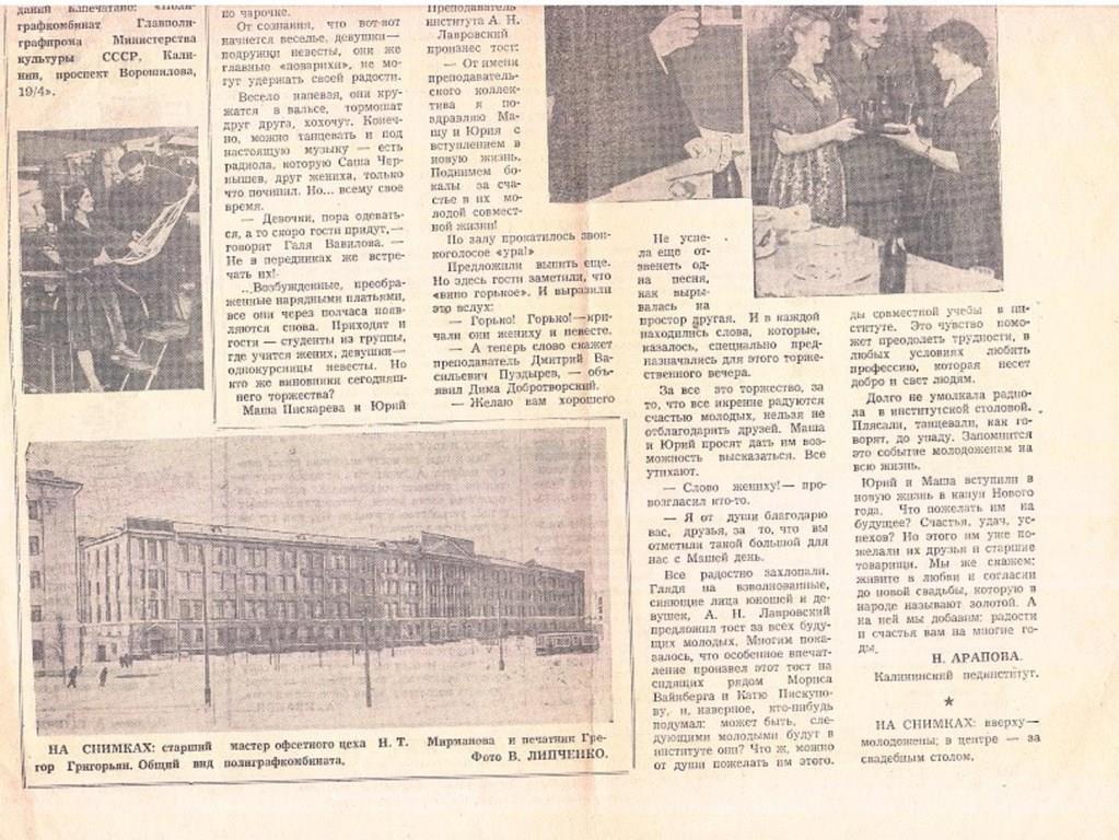 История семьи Морозовых начинается со знакомства в стенах Калининского педагогического института. Молодые люди быстро нашли общий язык благодаря интересу к профессии учителя. Регистрация брака состоялась 17 декабря 1955 г. в духе времени - настоящую комсомольскую свадьбу отмечали всем факультетом. Он стал историком, она - учителем русского языка и литературы.